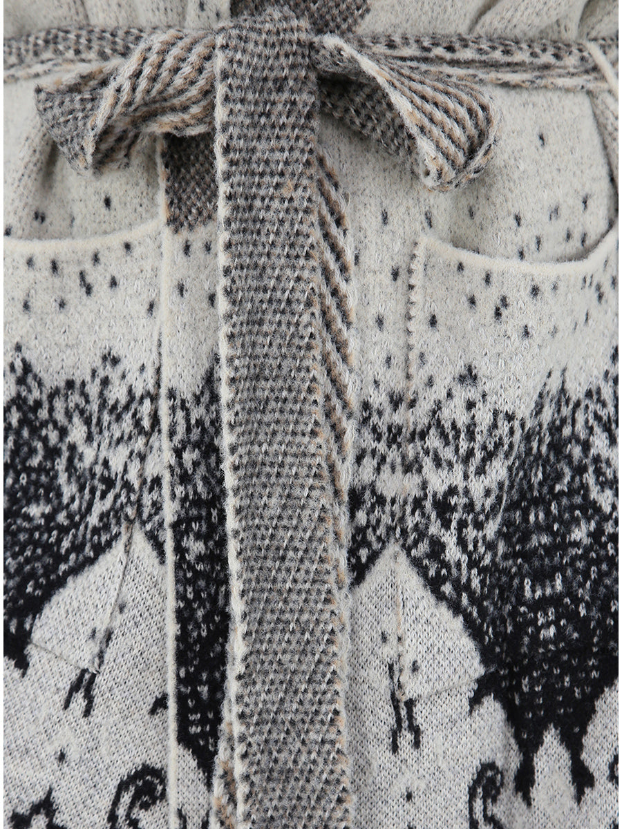 Cardigan lungo morbido in misto lana, con scollo a V dalla linea dritta e con cintura staccabile da annodare in vita, fantasia sfumata sul fondo e sul bordo delle maniche. Capo must have di Akep, da coordinare con outfit dai toni neutri.