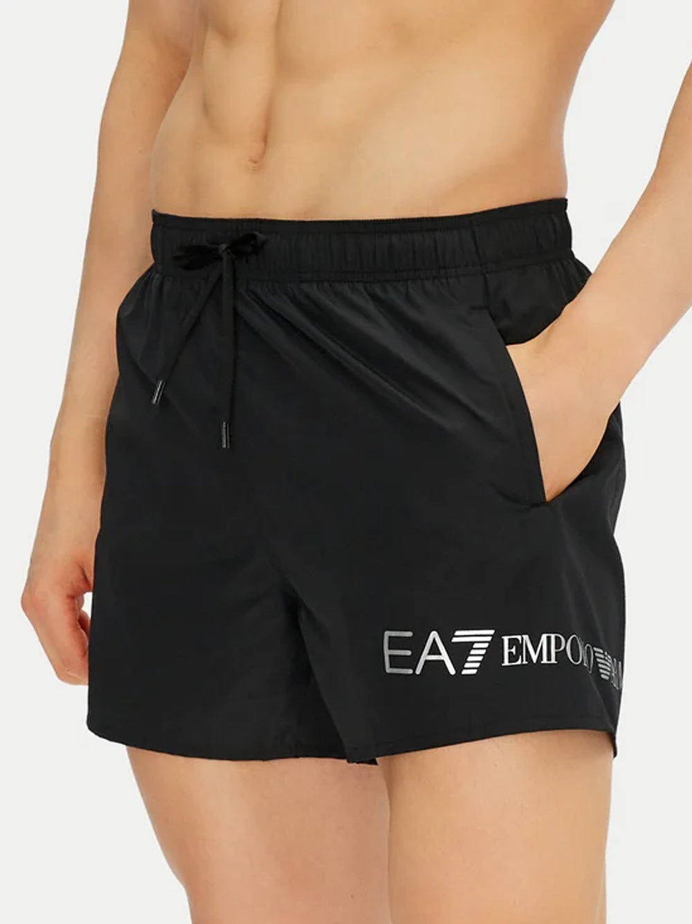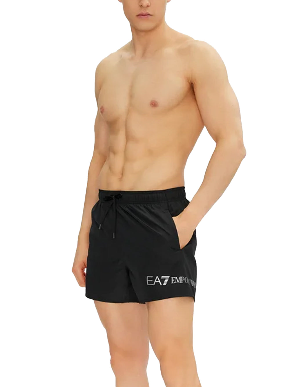 Logo EA7 a contrasto argento sulla gamba sinistra