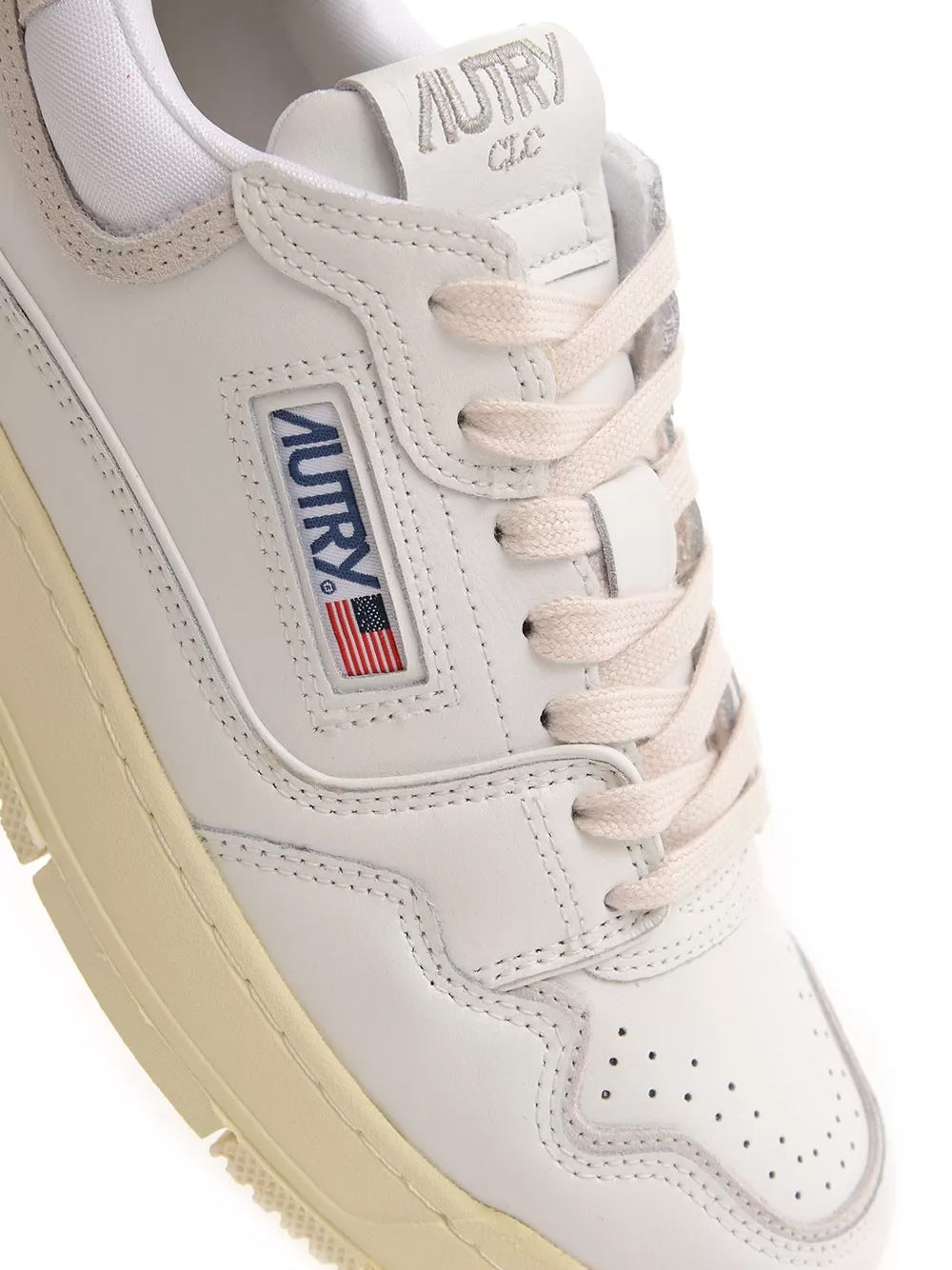 Tomaia in pelle, suede e microrete. Punta con microfori. Lacci piatti in cotone. Label con ricamo cucita sulla linguetta.. Fodera in pelle e spugna di cotone. Suola in gomma. Altezza suola: 3,4-4 cm.