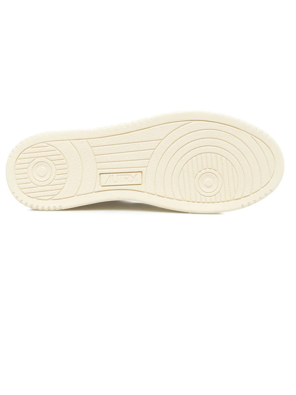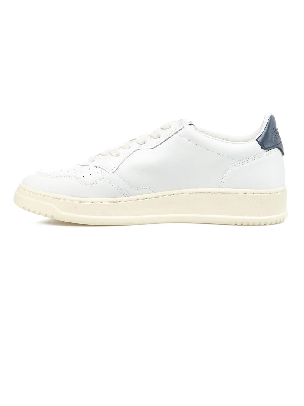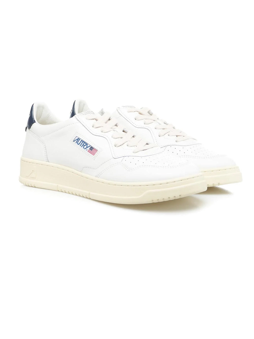 Sneaker bassa da uomo ispirata ai modelli vintage anni Ottanta. Tomaia in pelle bianca con impunture che definiscono gli inserti multistrato in tono. Punta traforata per favorire la traspirazione. Lacci piatti in cotone. Linguetta in tessuto con label cucita in tono. Collarino imbottito.