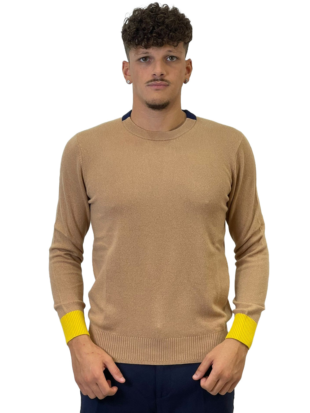 Maglioncino in cashmere blend girocollo con polsini e collo a contrasto colore.