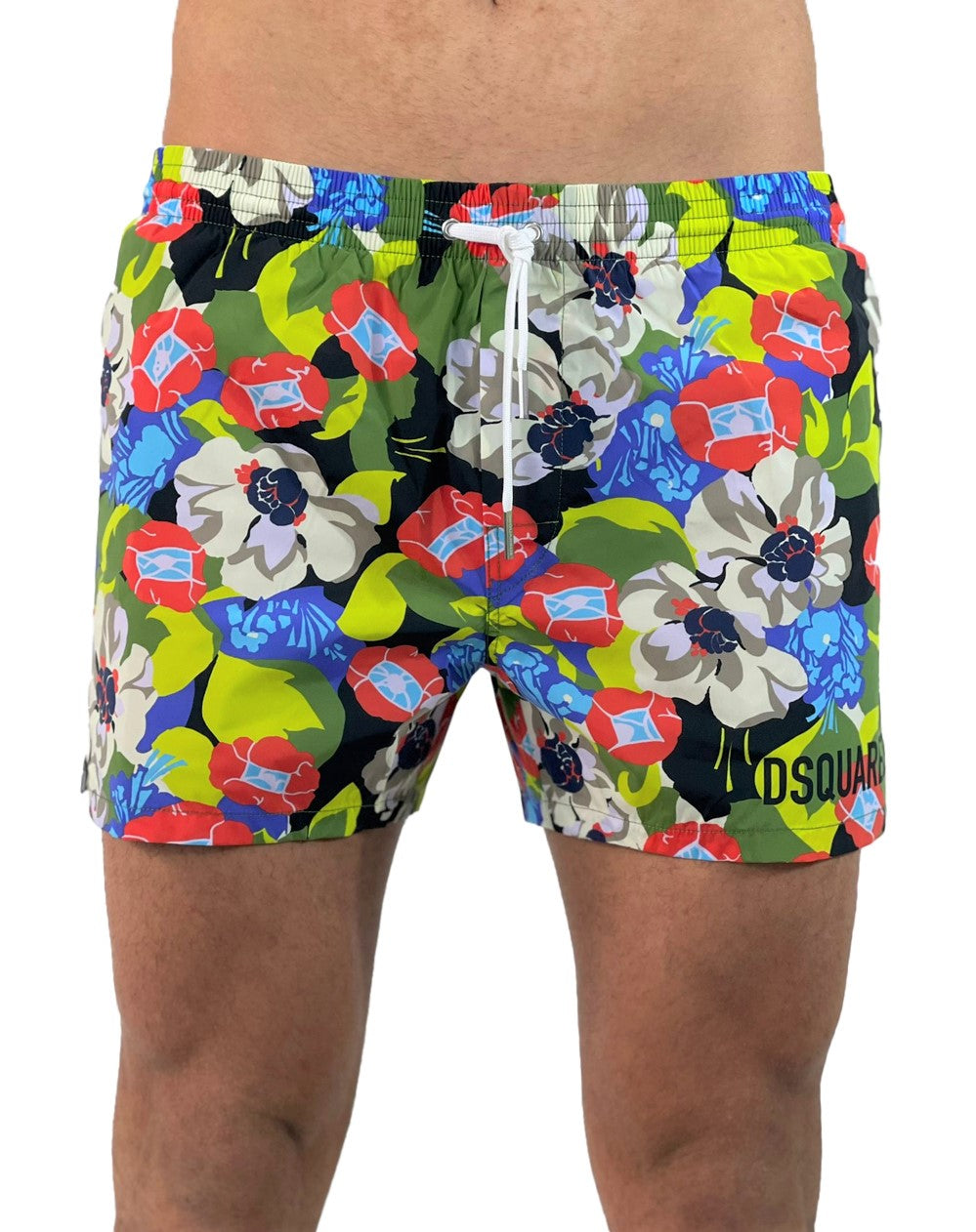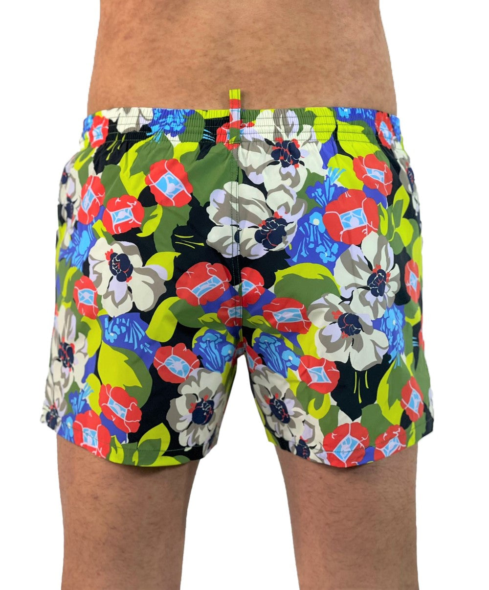 Boxer midi da mare in nylon con stampa floreale allover. Inserto elastico con coulisse al punto vita. Tasche frontali. Stampa lettering DSQUARED2.