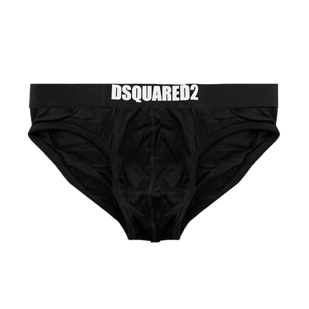 Slip Dsquared da uomo a tinta unita in colorazione nero con molla elastica in vita in colorazione tono su tono e classica scritta del brand all'interno in contrasto di colore. Tessuto in cotone e vestibilità regolare.