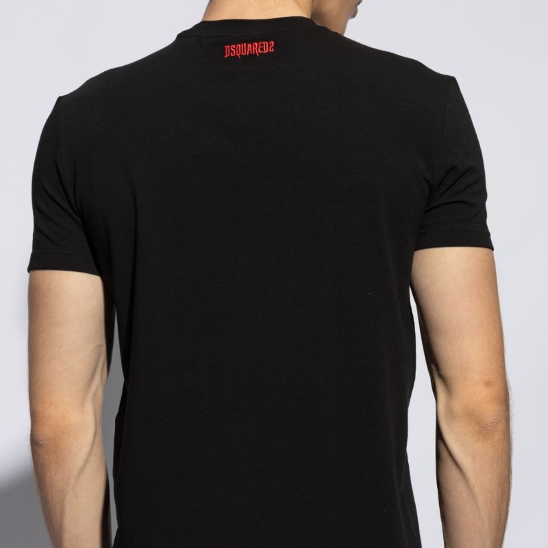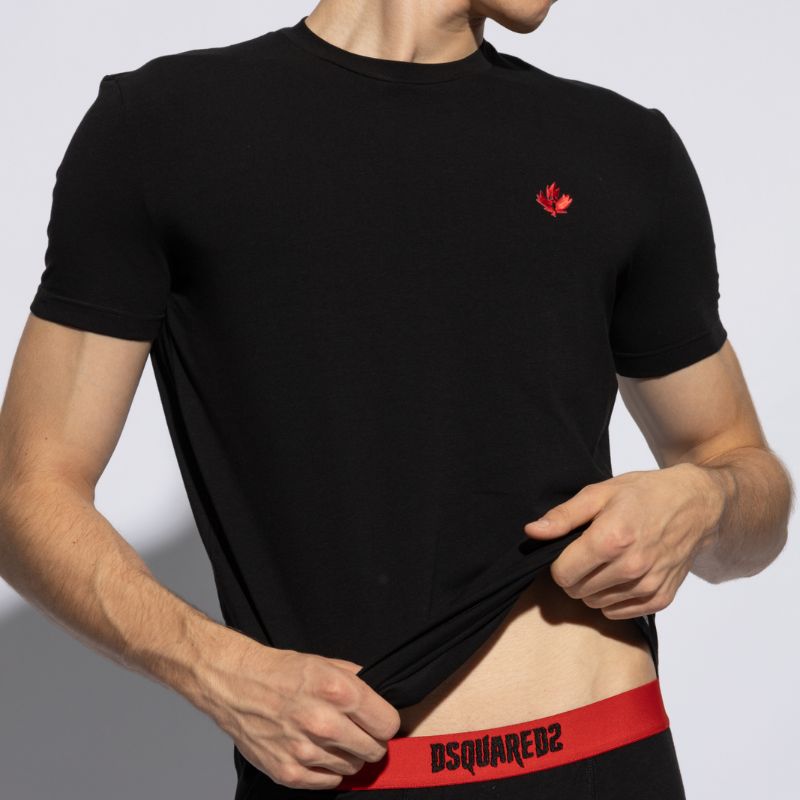 Caratterizzato da un taglio classico con maniche corte e scollo rotondo, il design di questa T-shirt è accentuato da un piccolo emblema rosso sul petto sinistro. La parte posteriore rivela inoltre una piccola iscrizione rossa sotto la scollatura, che riecheggia il motivo distintivo del marchio.