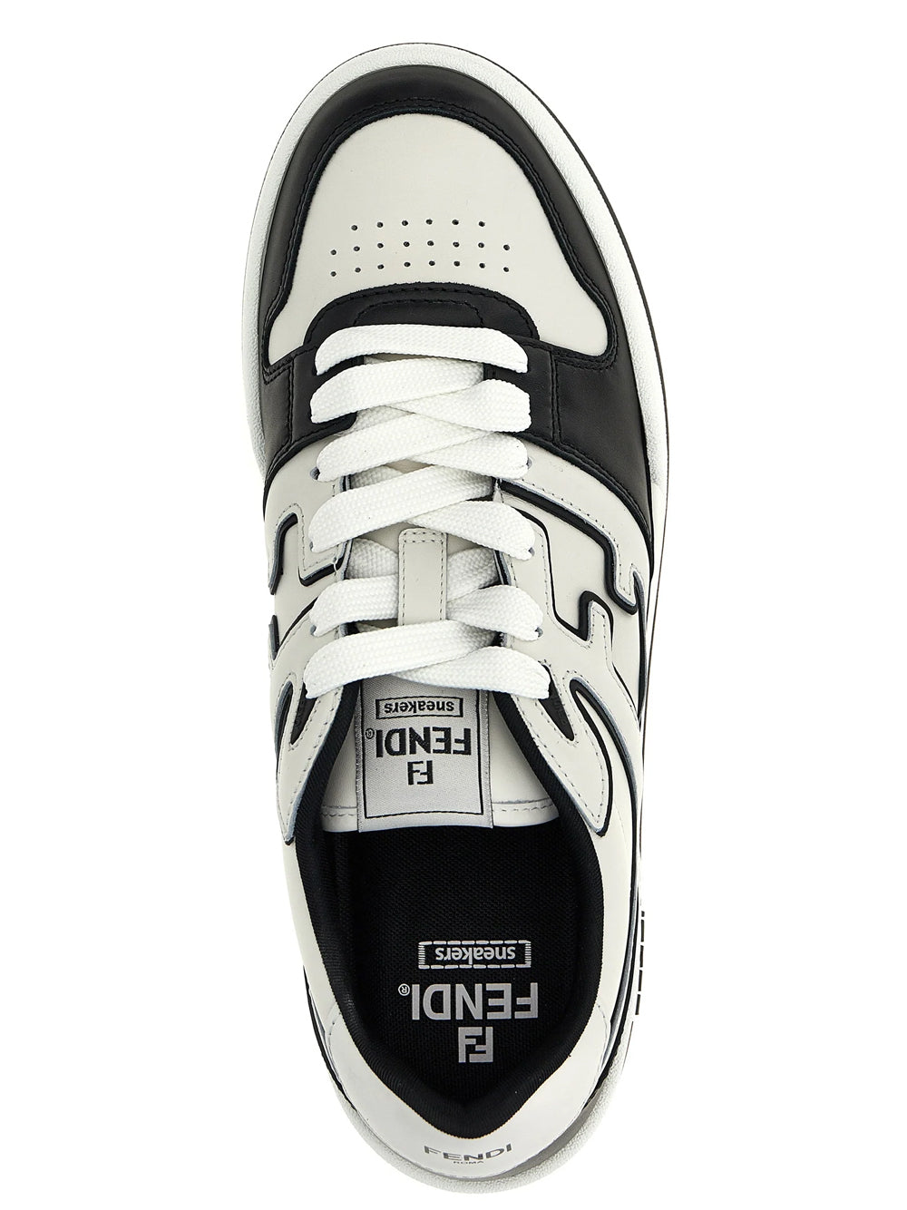 Sneaker stringata Fendi Match. Realizzata in pelle nera con dettagli in pelle bianca. Suola in gomma con lettering Fendi sul lato.