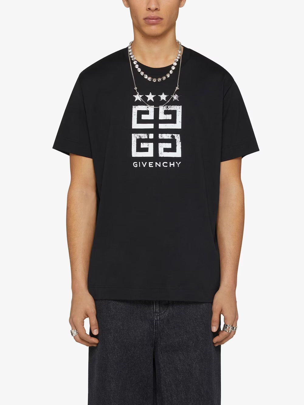 T-shirt a maniche corte in cotone. Girocollo. Stampa 4G Stars sul davanti effetto usato. Piccolo logo 4G stampato sul retro al fondo. Taglio slim.