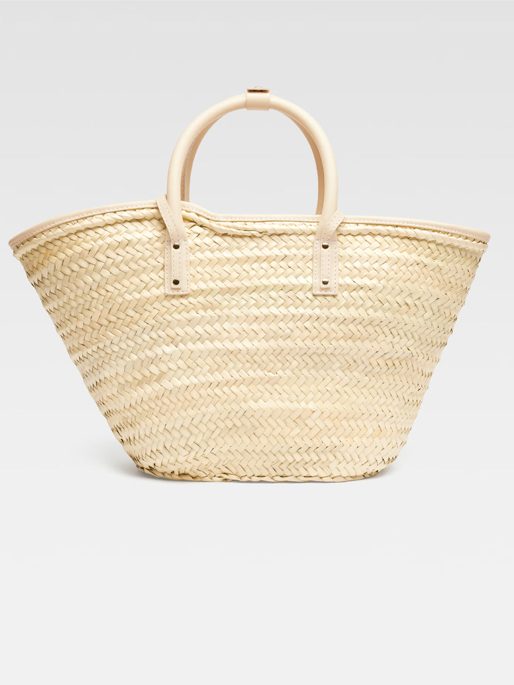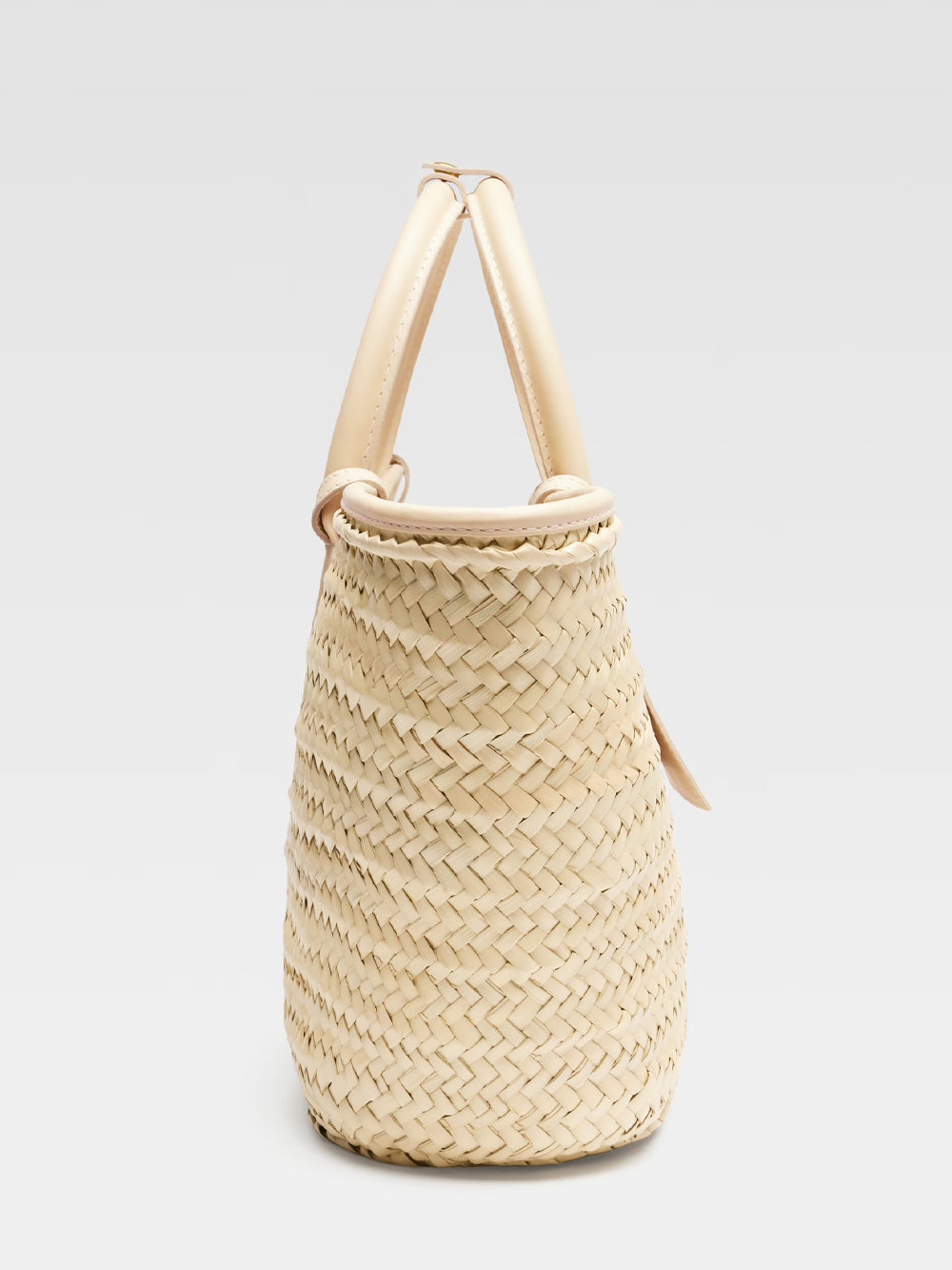 - Borsa cesto intrecciata a mano con dettagli in pelle liscia