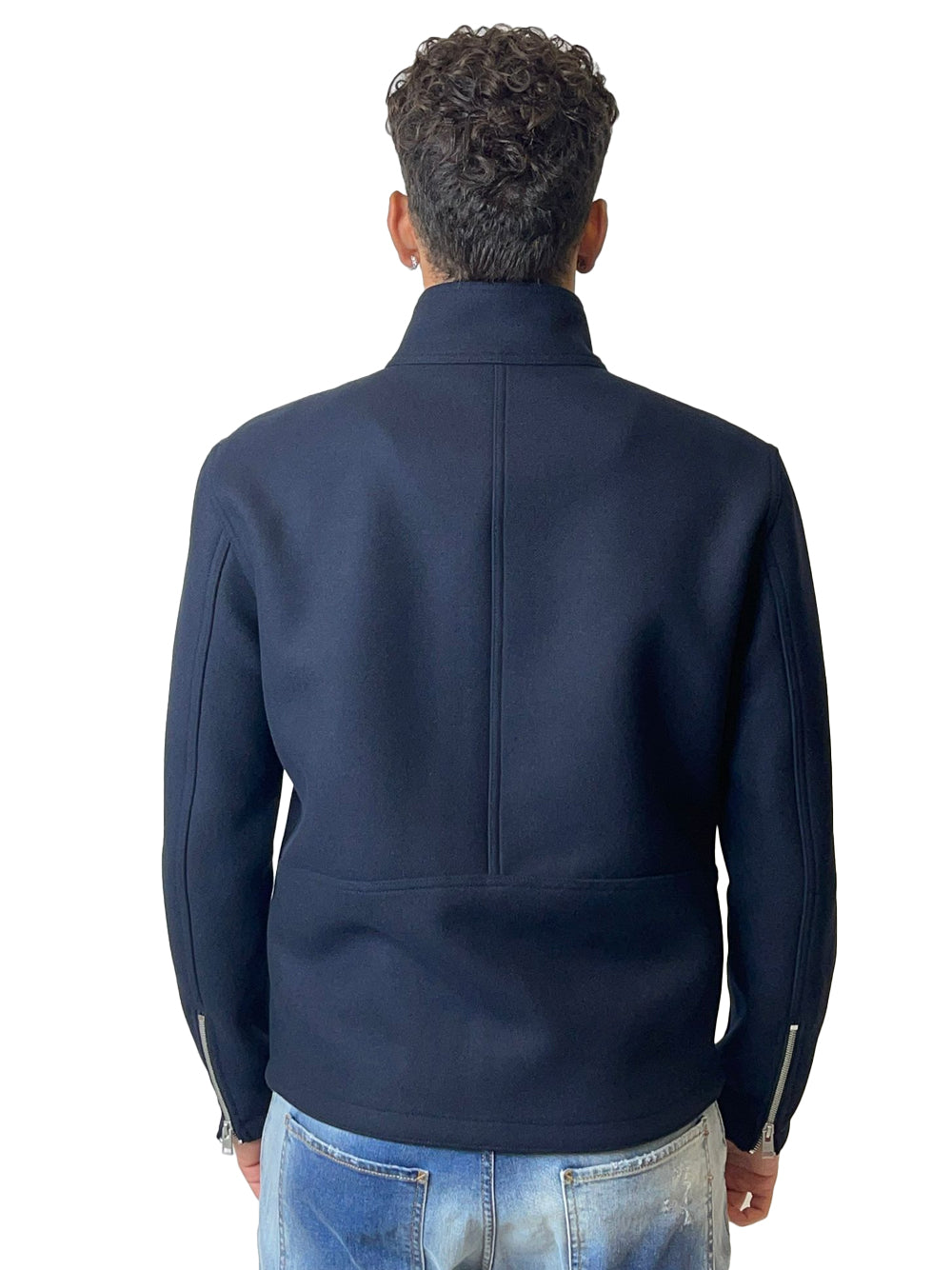 Giubbotto jersey finitura spazzolata. Chiusura lampo frontale. Colletto alto. Maniche lunghe. Cerniere polsini. Due tasche laterali a filetto. Orlo dritto.
