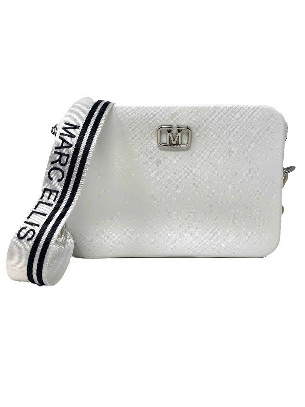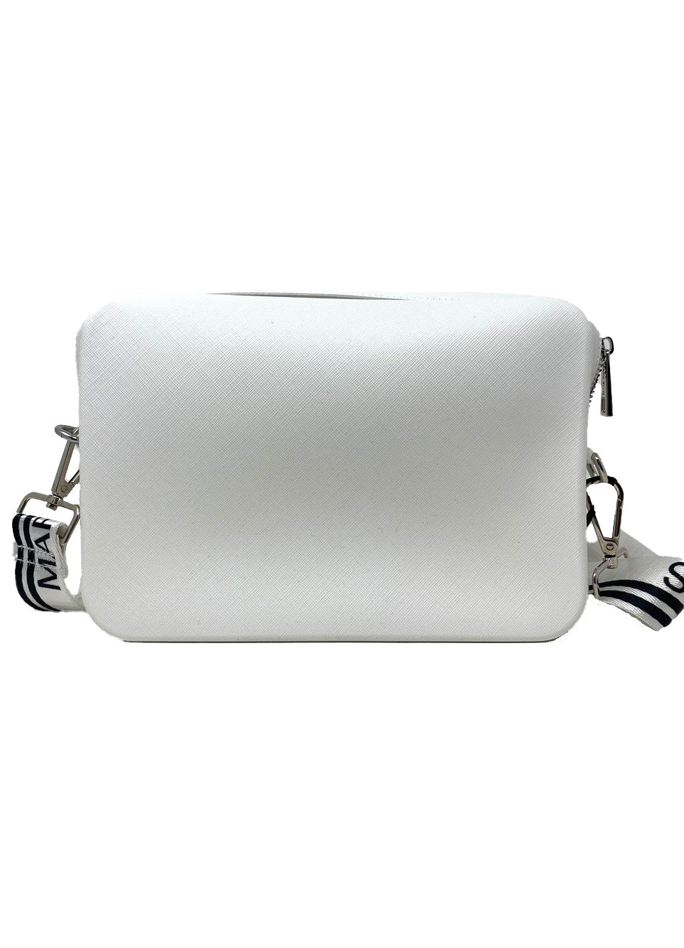 Borsa in pvc con logo in metallo e chiusura zip. Dotata di tracolla in stoffa logata e manico removibile. Dimensioni: 24 x 17 x 4,5 cm.