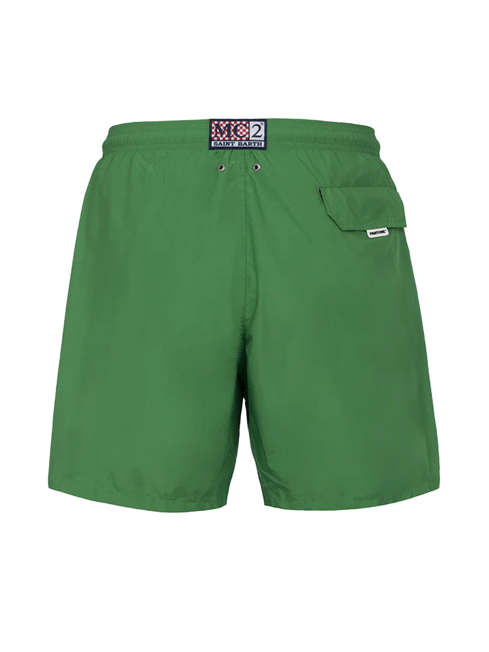 Ti presentiamo la nostra collaborazione esclusiva con Pantone, l'autorità di fama mondiale in materia di colore. Realizzati in tessuto leggero ad asciugatura rapida, questi pantaloncini da bagno presentano un design solido in tinta unita con coulisse in vita a contrasto. Nella parte anteriore troverai una targhetta metallica con marchio Pantone che mostra il nome e il codice ufficiali del colore, aggiungendo un tocco di raffinatezza. I pantaloncini sono dotati di due tasche laterali per comodità, mentre la parte posteriore è dotata di occhielli di drenaggio per evitare l'effetto gonfio. Completo di fodera interamente in rete per il massimo comfort, etichetta con logo MC2 Saint Barth e tasca posteriore con logo Pantone e chiusura magnetica.