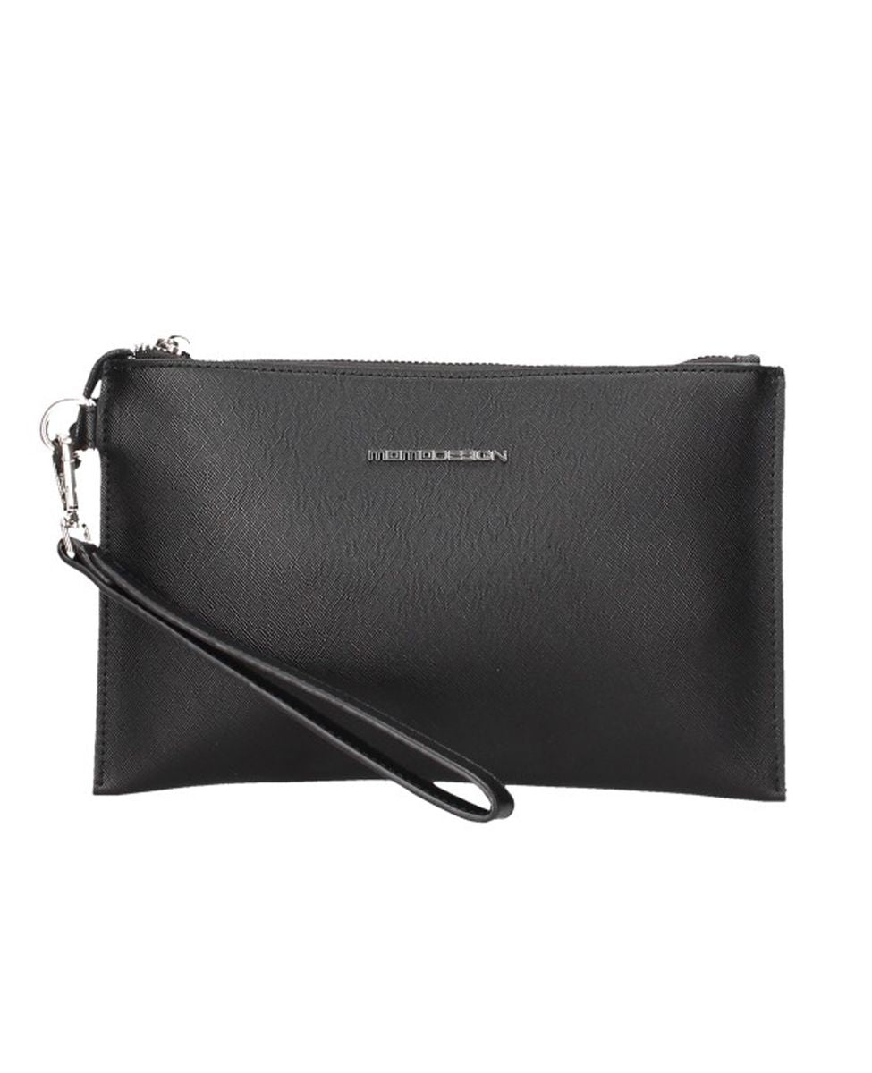 Pochette MoMo design con chiusura zip in metallo argento. Logo in piccolo frontale in metallo. All'interno tasca con zip. Manico a mano. Dimensioni: 26 x 16 cm.