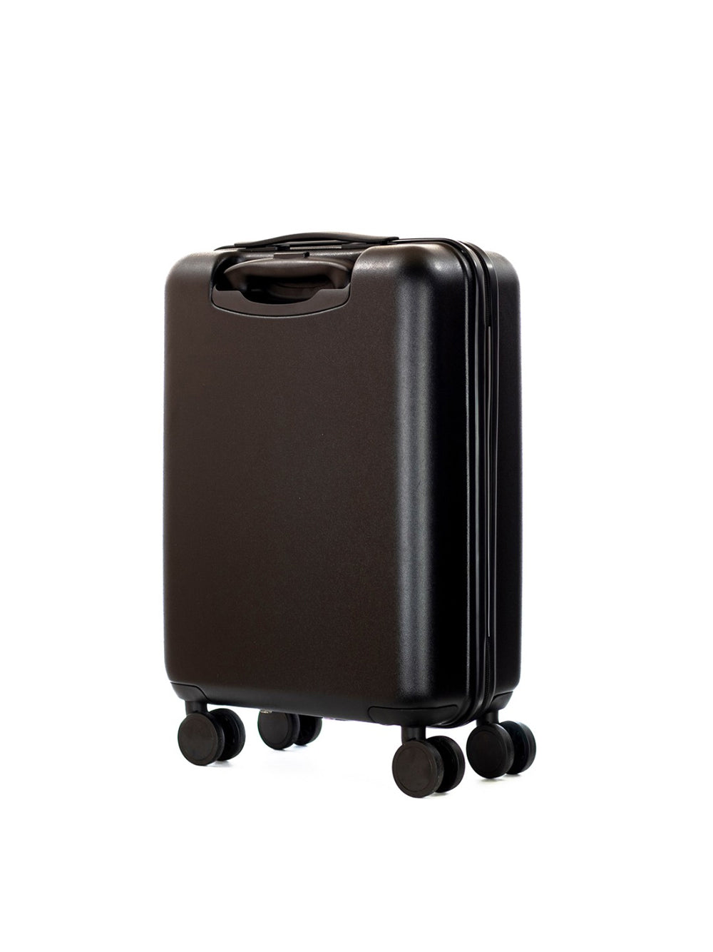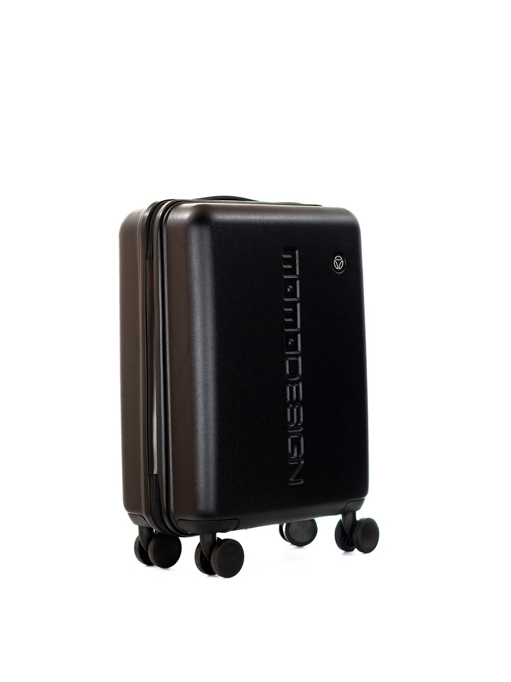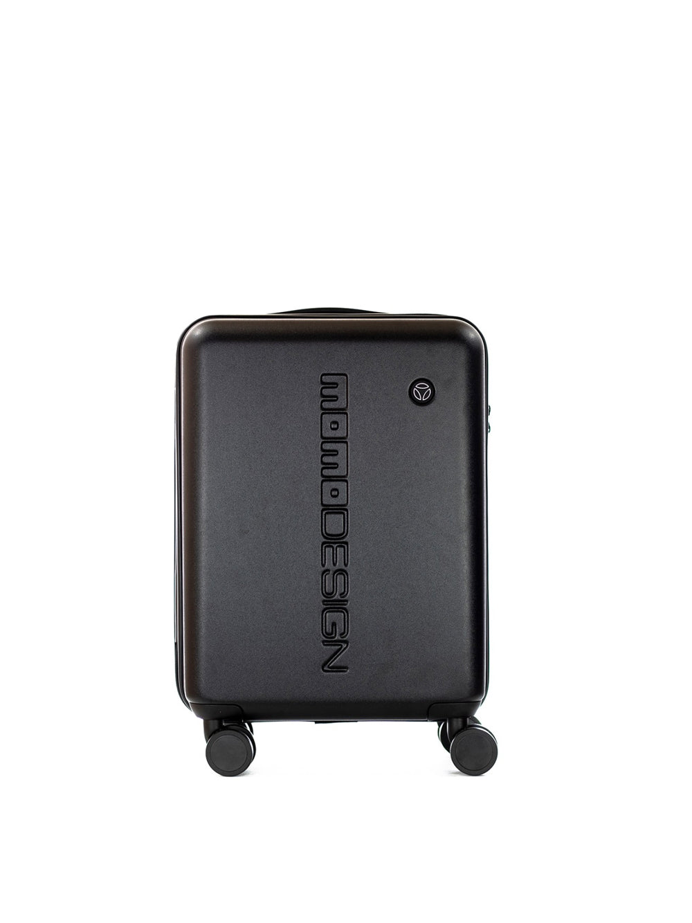 Trolley piccolo in ABS nero con finitura opaca e decalcomania "Momo Design" sul davanti. Chiusura con doppia zip e combinazione a 3 cifre. Manico in tpu, manico telescopico in alluminio e tpu. Dimensioni: 55 x 40 x 20 cm. Peso a vuoto: 2,5 Kg.