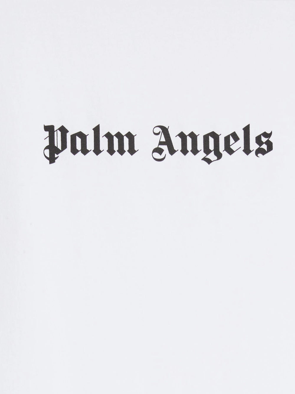 ESSENZIALE PER TUTTI I GIORNI, CON DETTAGLI ESCLUSIVI. T-SHIRT BIANCA, DALLA VESTIBILITÀ SLIM, CON LOGO PALM ANGLES STAMPATO IN NERO DAVANTI AL CENTRO.