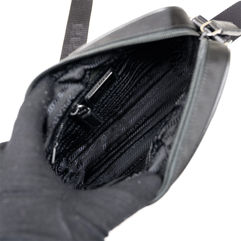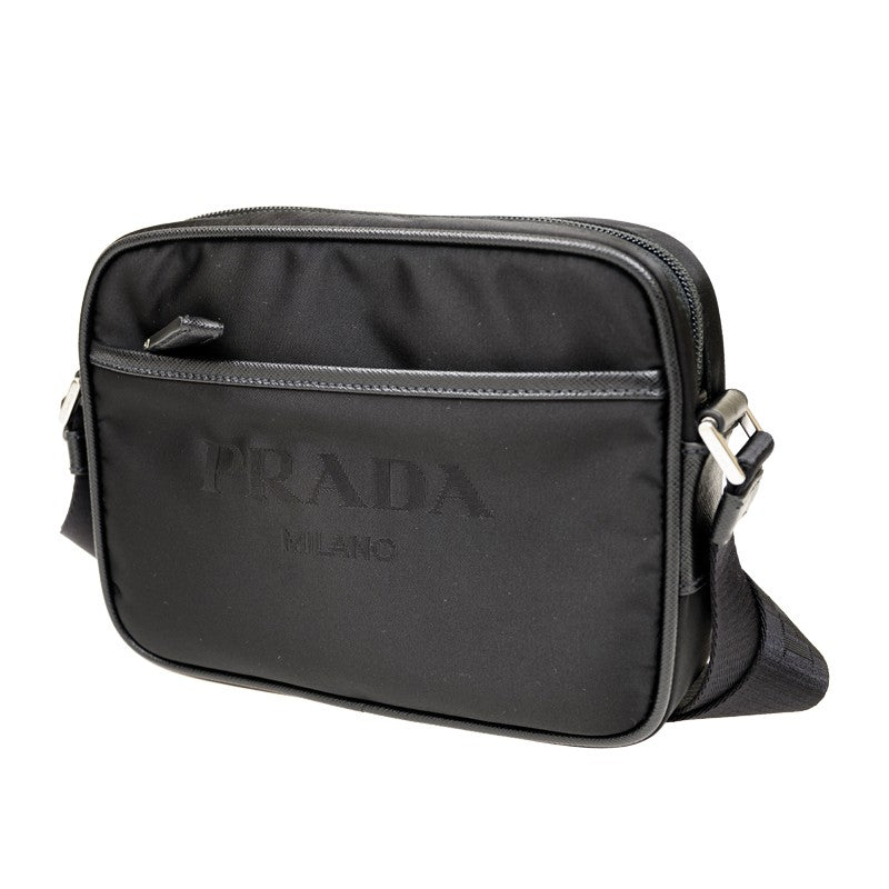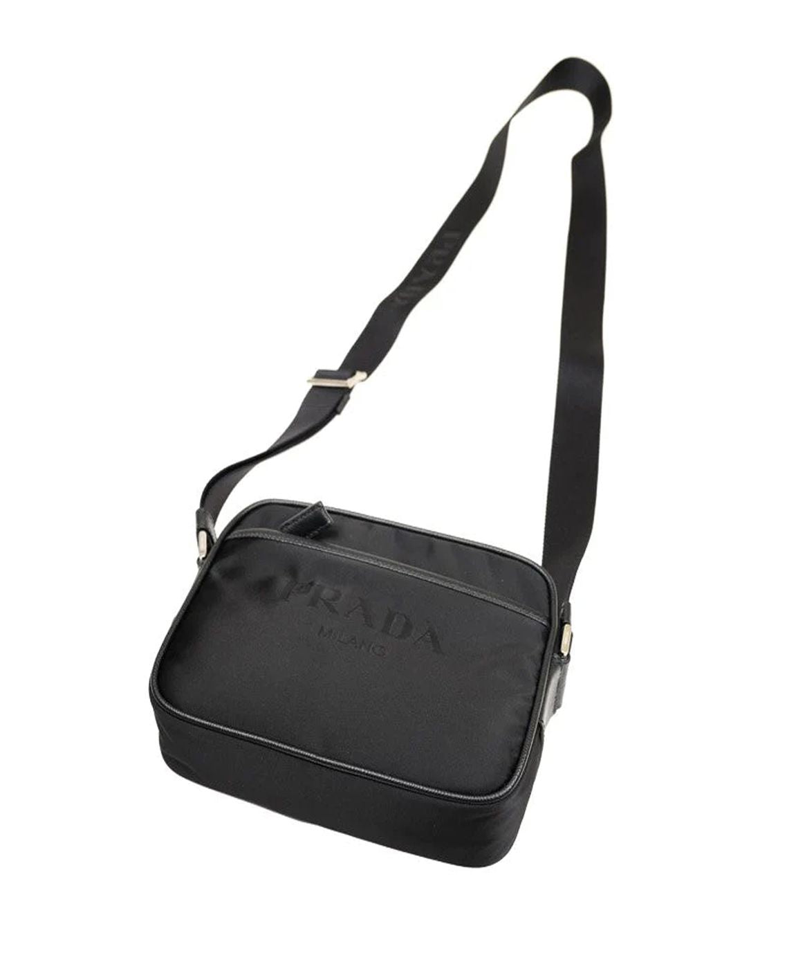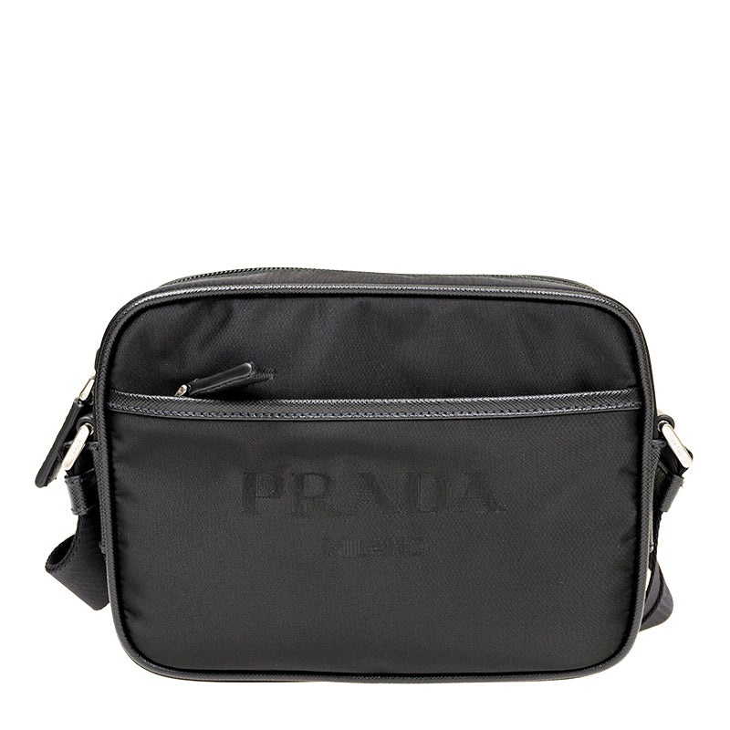 Borsa a tracolla con applique logo in metallo da una parte e dall'altra logo nero su nero. Chiusura con zip. Unico scomparto con tasca zip interna. Tasca esterna con zip. Tracolla regolabile. Sacco antipolvere incluso. Dimensioni: 8 x 2,5 x 6 cm.