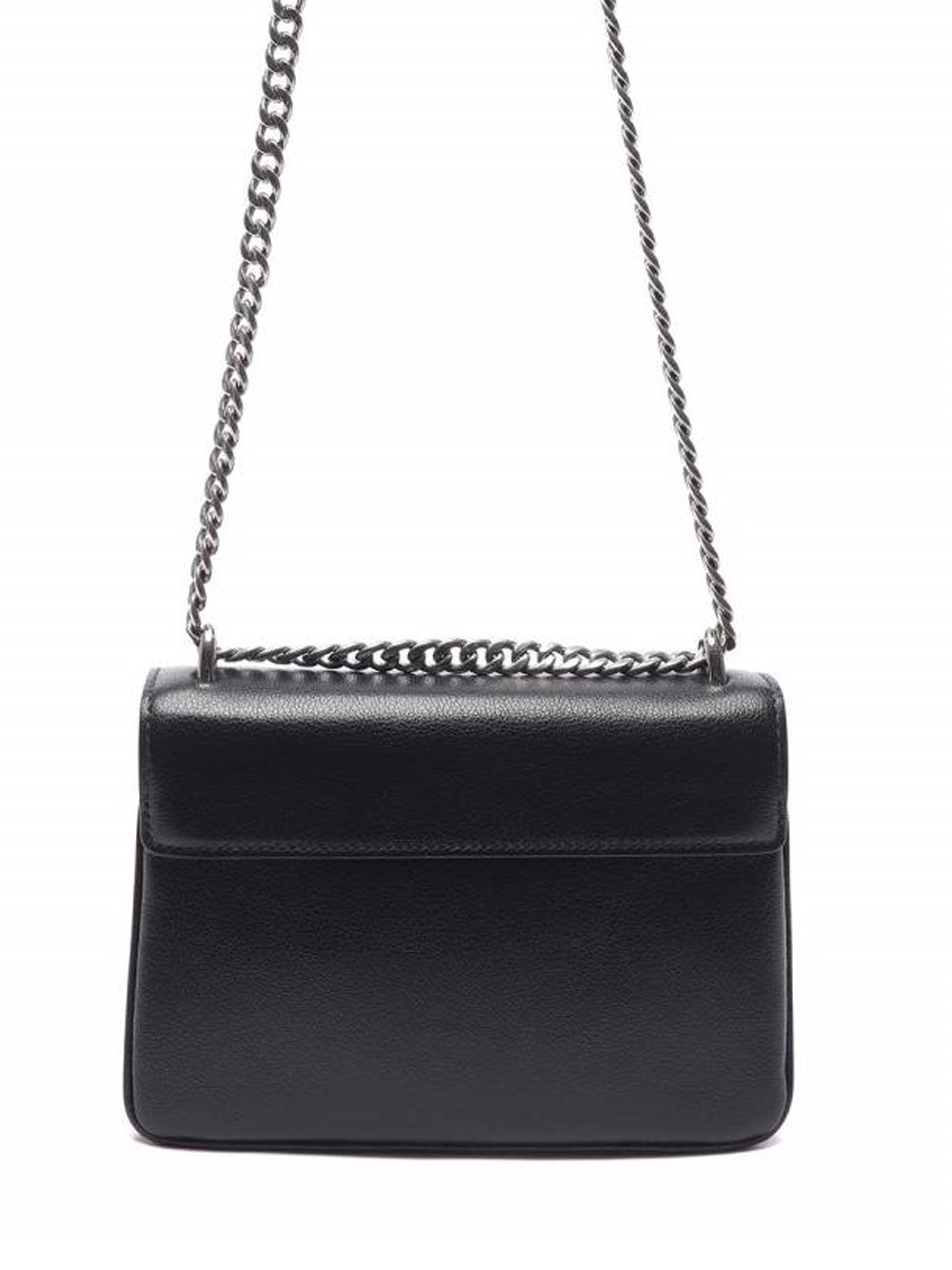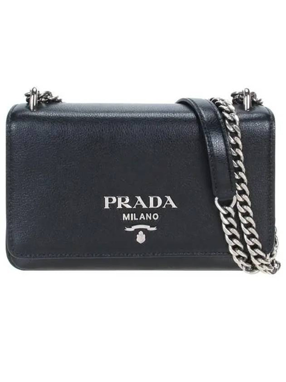 Pattina con tracolla a catena. Logo in metallo PRADA MILANO. Chiusura con patta magnetica. Dimensioni: 20 x 13 x 5 cm.