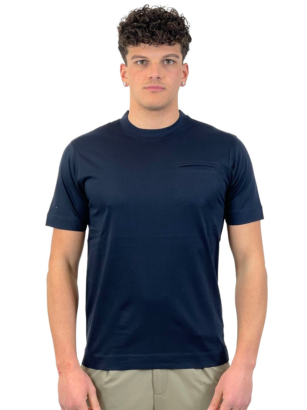 T-shirt a manica corta in cotone mercerizzato. Con taschino sul petto.