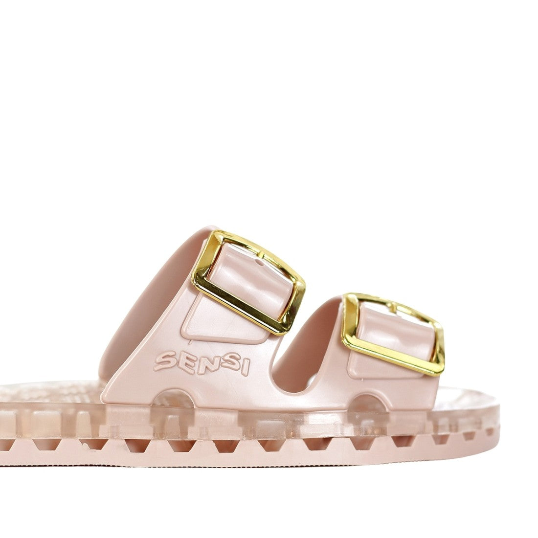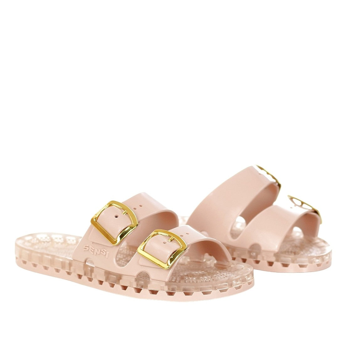 La ciabatta Sensi in gomma rosa cipria è una scelta versatile e ecologica per la tua estate. Realizzata al 100% in gomma riciclabile, presenta una tomaia a doppia fascia regolabile tramite fibbia color oro, offrendo una calzata personalizzata e confortevole. Il fondo in gomma rosa cipria è progettato con canali di deflusso per migliorare la stabilità e l'aderenza, mentre il sottopiede forato in gomma trasparente favorisce una maggiore traspirabilità, mantenendo i piedi freschi e asciutti.