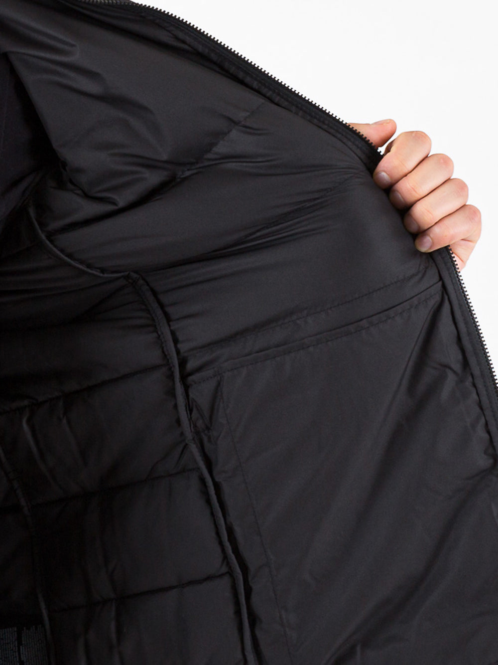 Imbottitura a zona in poliestere riciclato al 90% per stare al caldo anche con un clima bagnato. Finiture DWR senza PFC per una maggiore protezione dall’acqua. Cerniera centrale anteriore a vista. Tasche scaldamani con cerniera di sicurezza. Polsini elasticizzati. Logo a trasferimento termico sulla parte sinistra del petto e dietro la spalla destra.