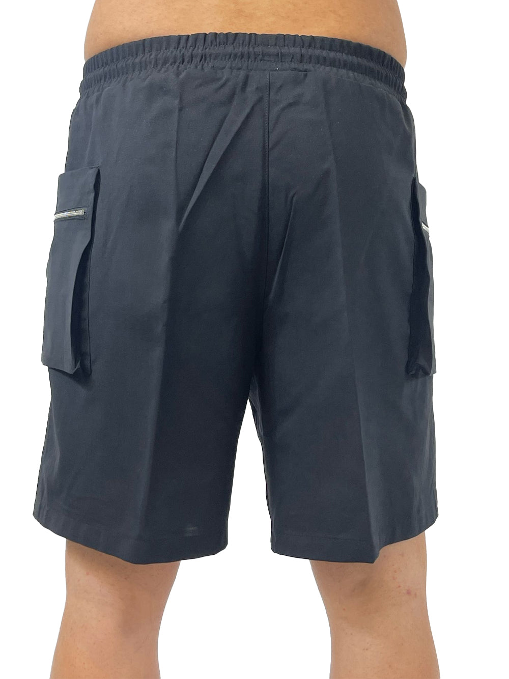 Bermuda con tasche laterali e dettaglio zip. Vita elasticizzata con coulisse.