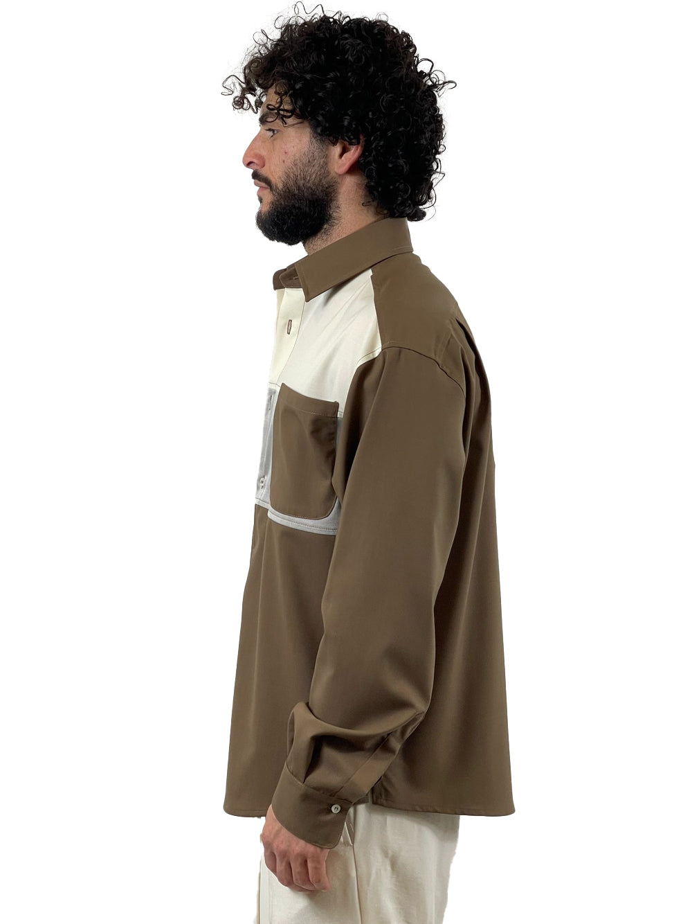 Camicia in fresco lana multicolor a pannelli. Chiusura bottoni.