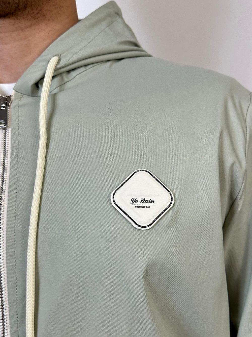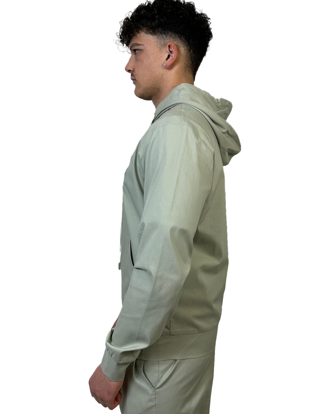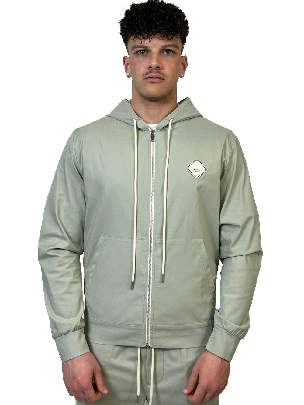 Felpa con cappuccio e chiusura zip. Patch rombo logo sul petto. Tasche a filetto.