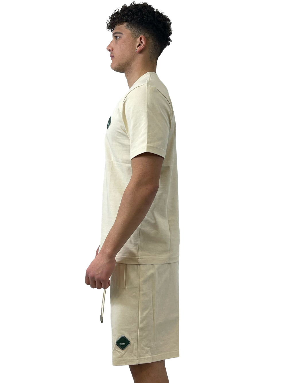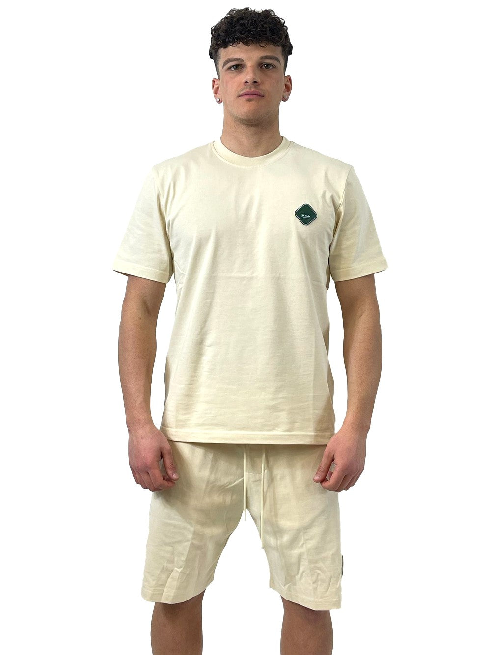 Completo t-shirt patch rombo puff con bermuda coordinato in vita elasticizzata.