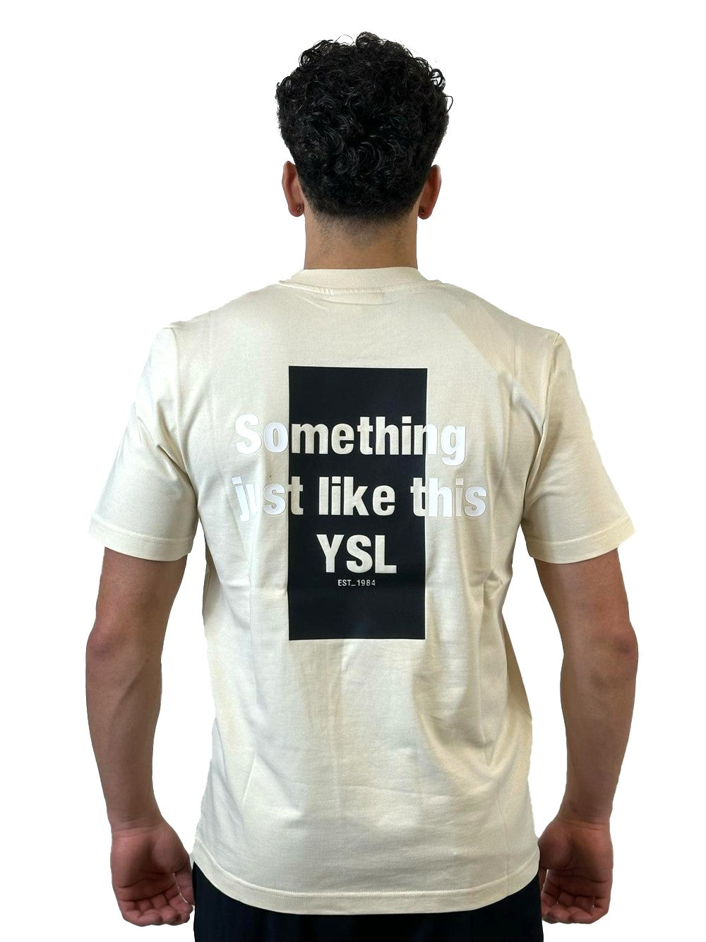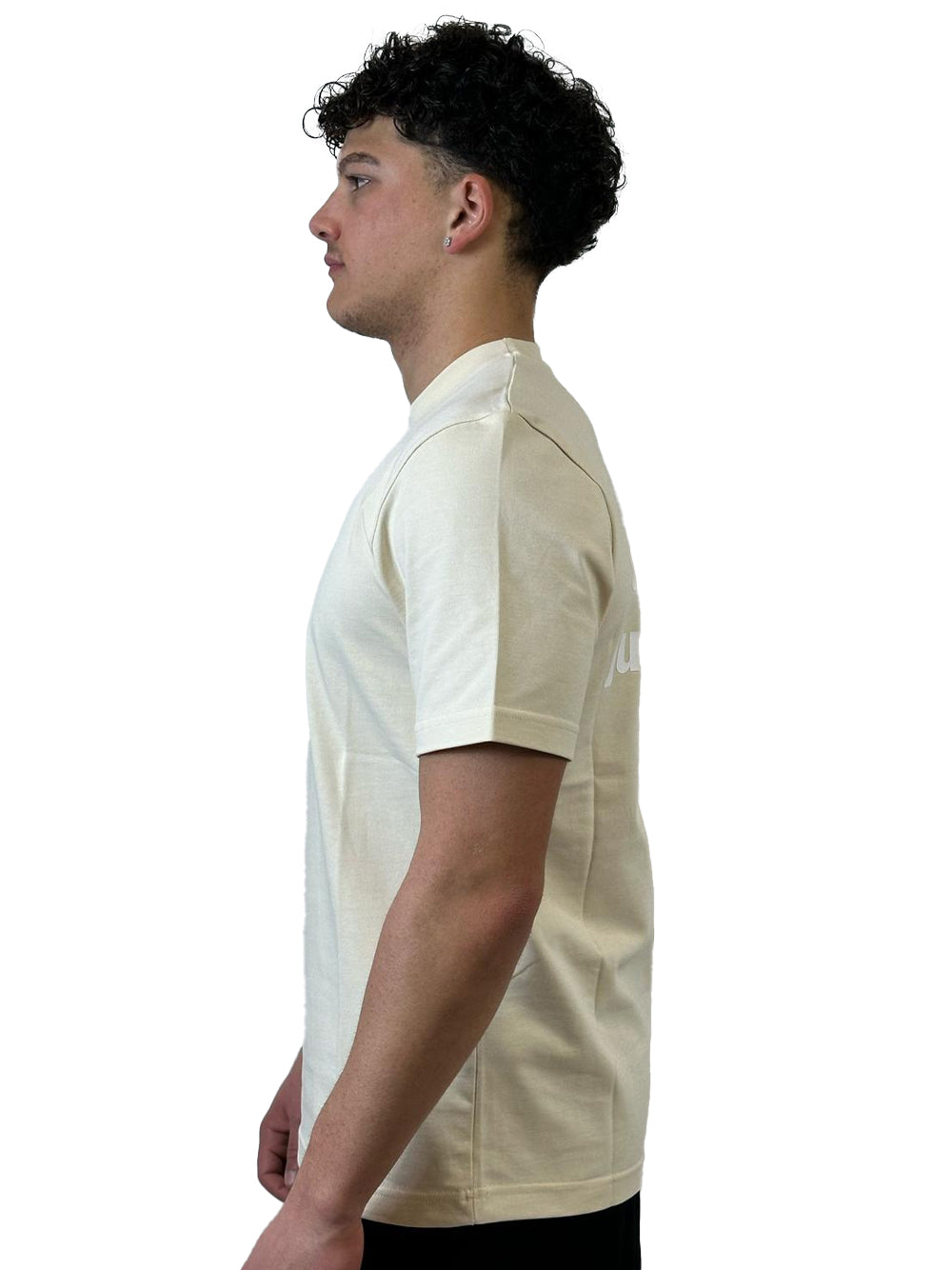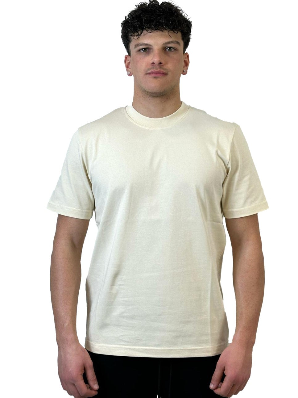 T-shirt a manica corta e girocollo con stampa plastificata sul retro.